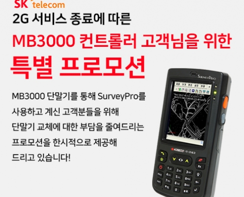 지오웨이브2020-07-14 17:28:542020-07-14 17:30:42SKT 2G 서비스 종료에 따른 SurveyPro MB3000 단말기 고객님을 위한 특별 프로모션